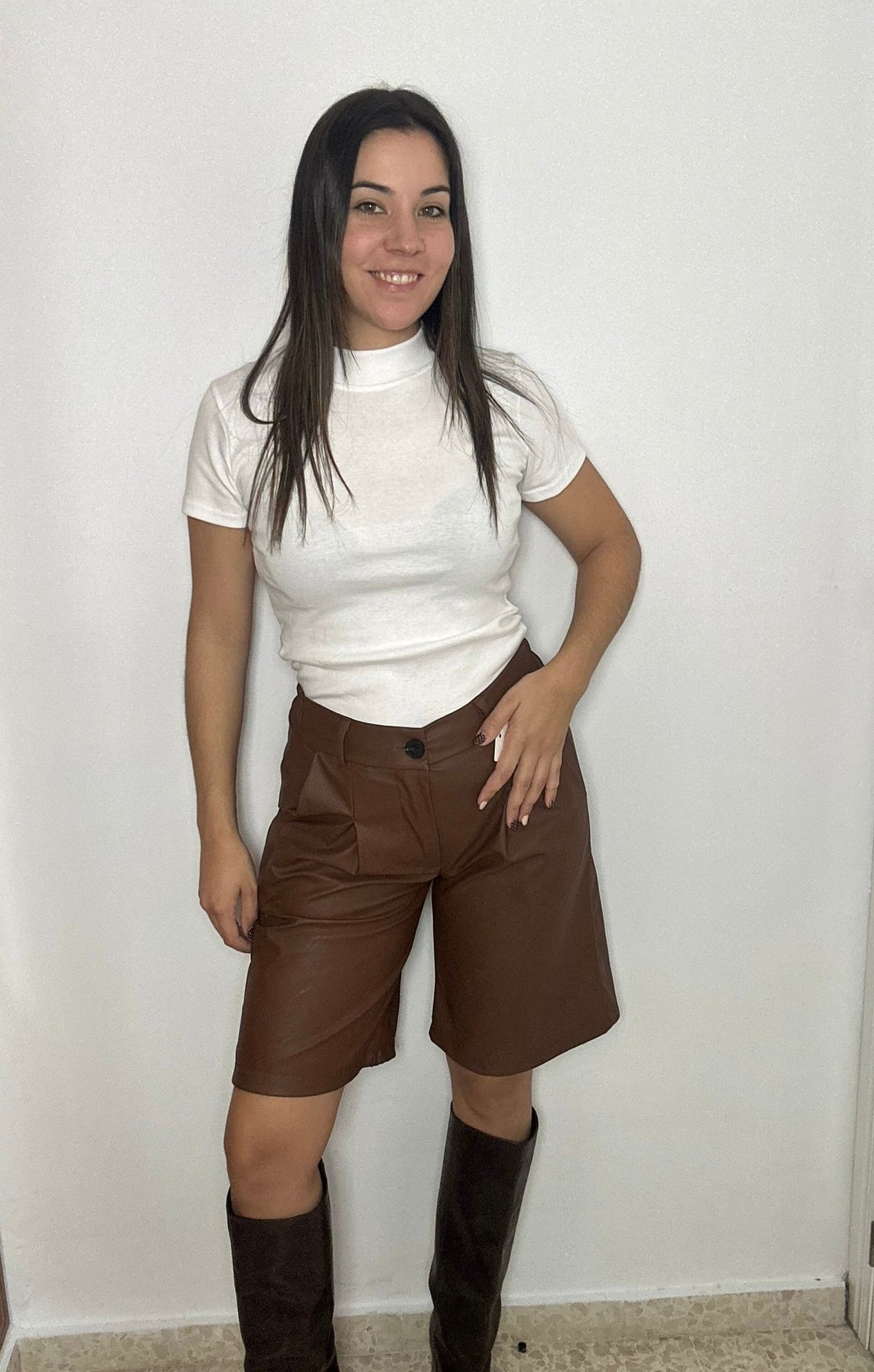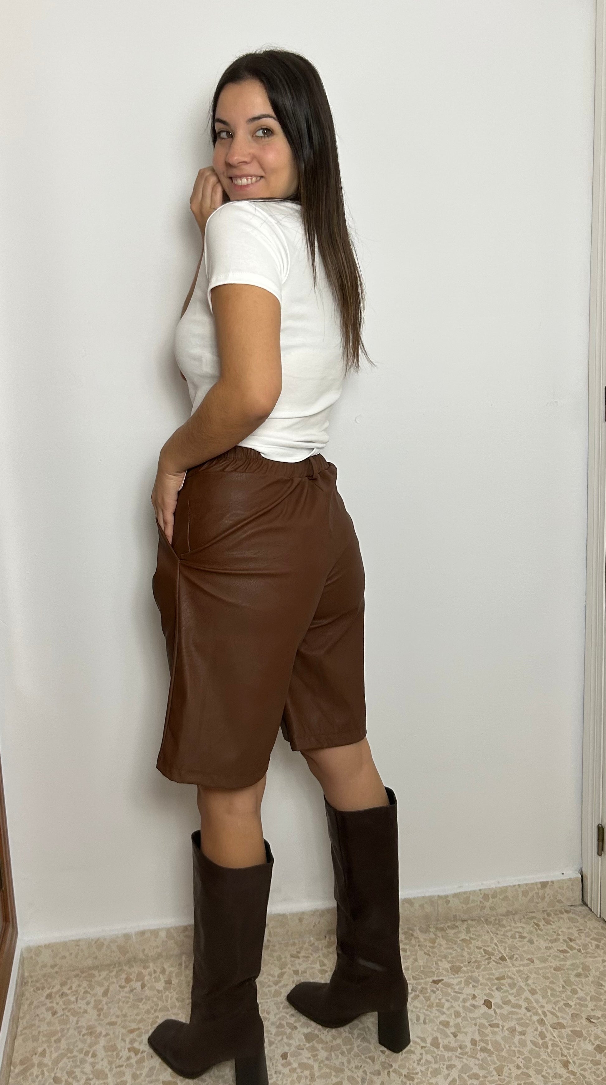 Bermuda de tiro alto efecto piel. Talla única hasta 40.