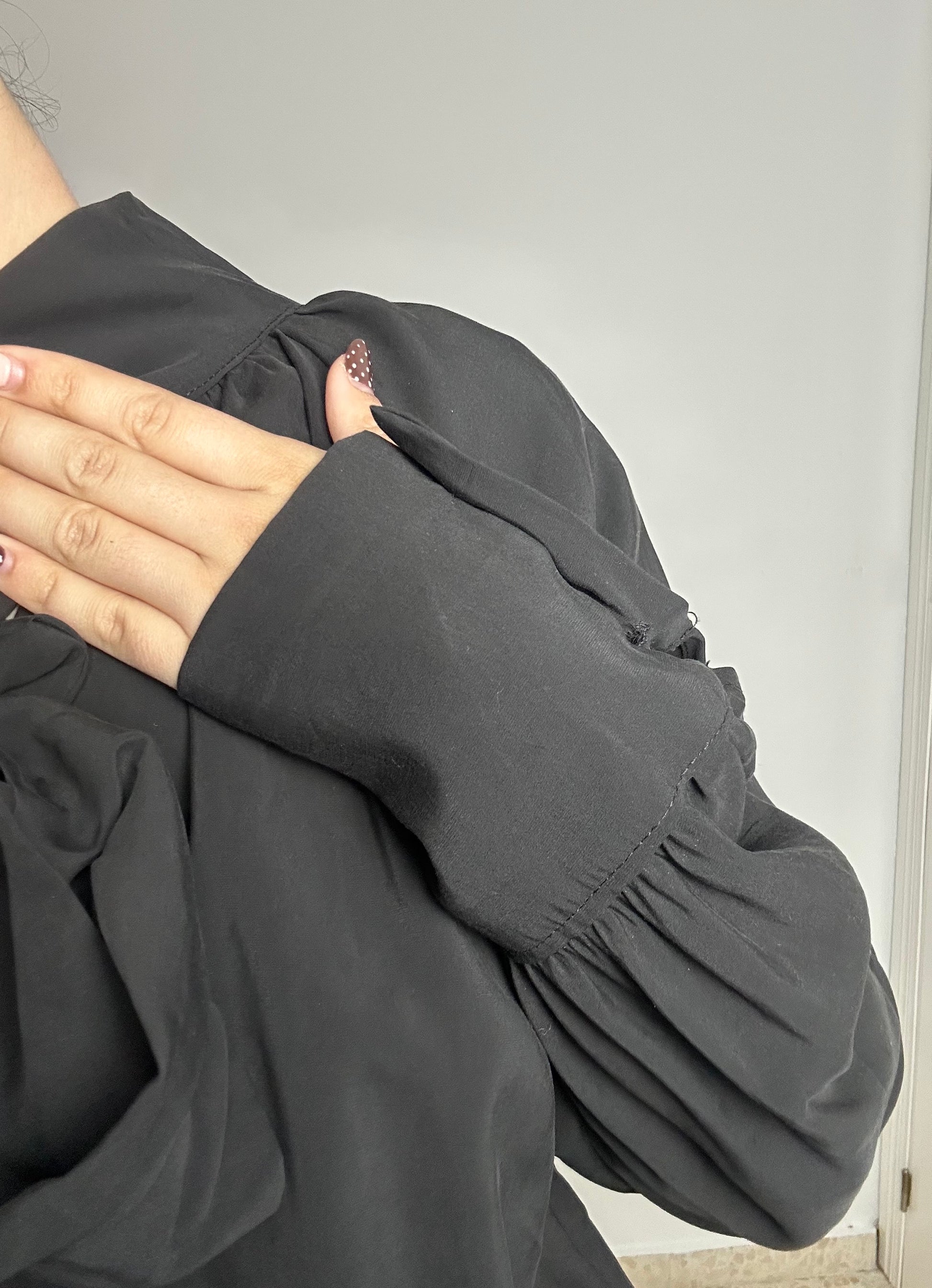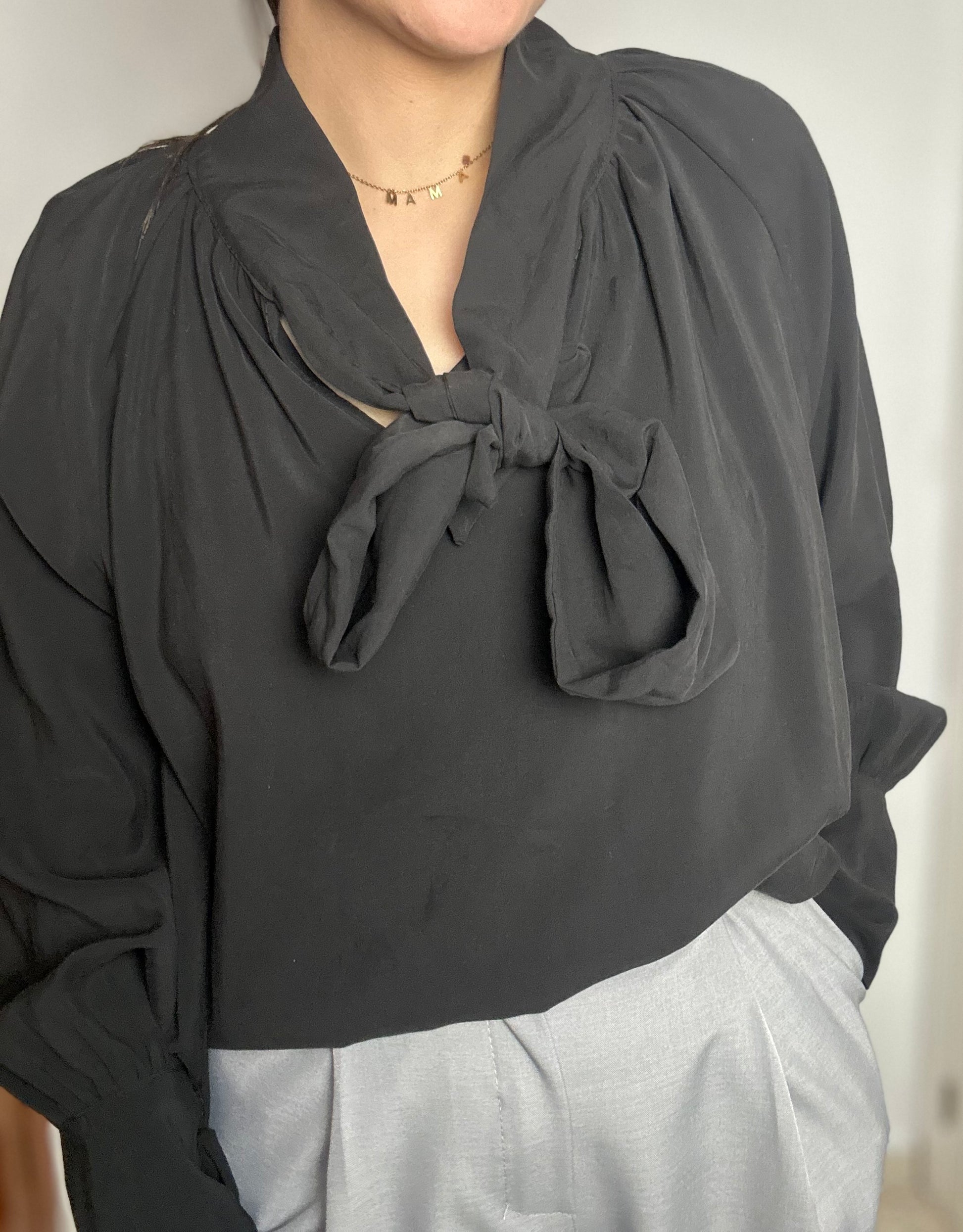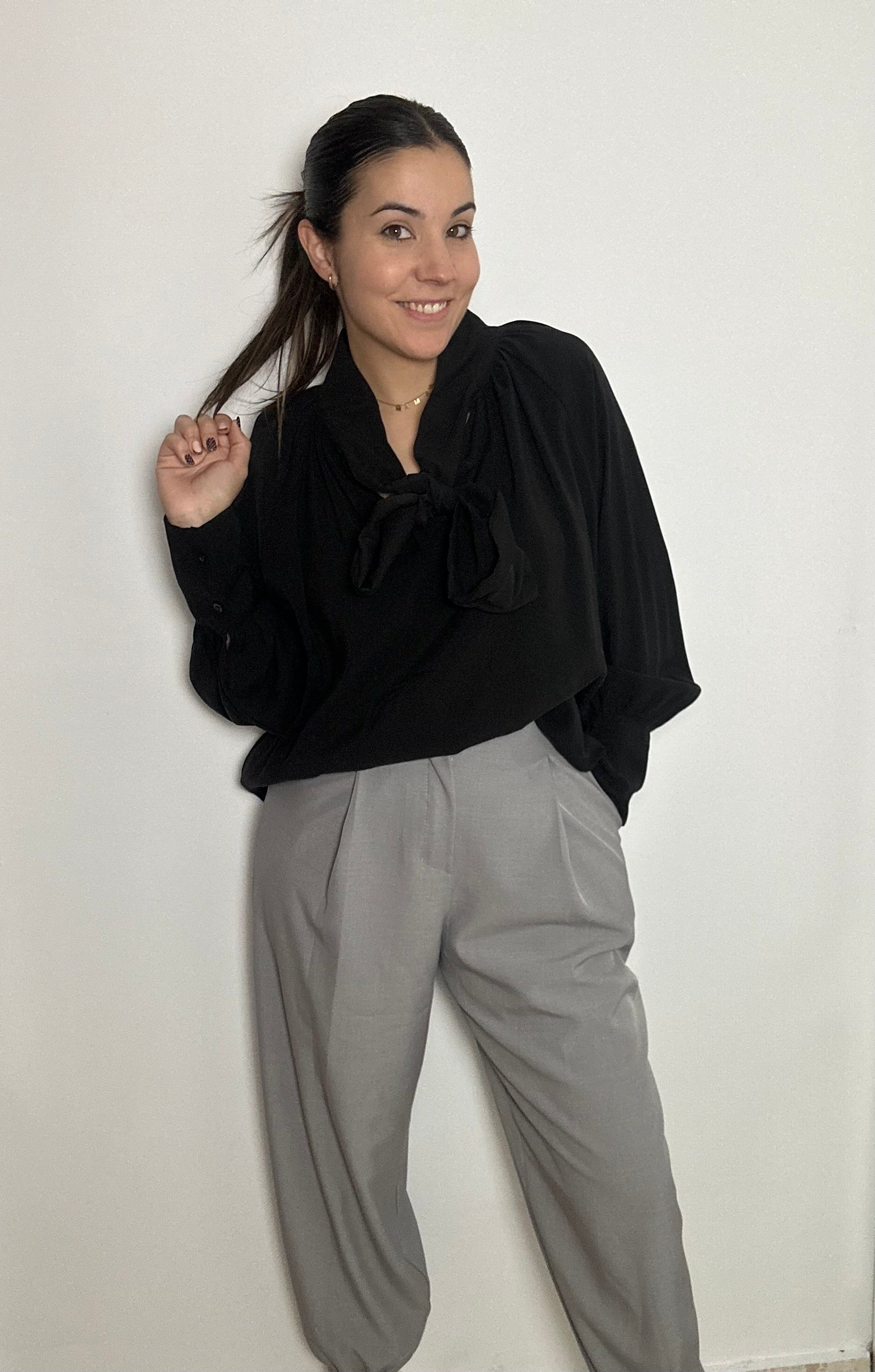 Camisa lazada con detalle en las muñecas. Tela piel de melocotón. Talla única hasta 42.