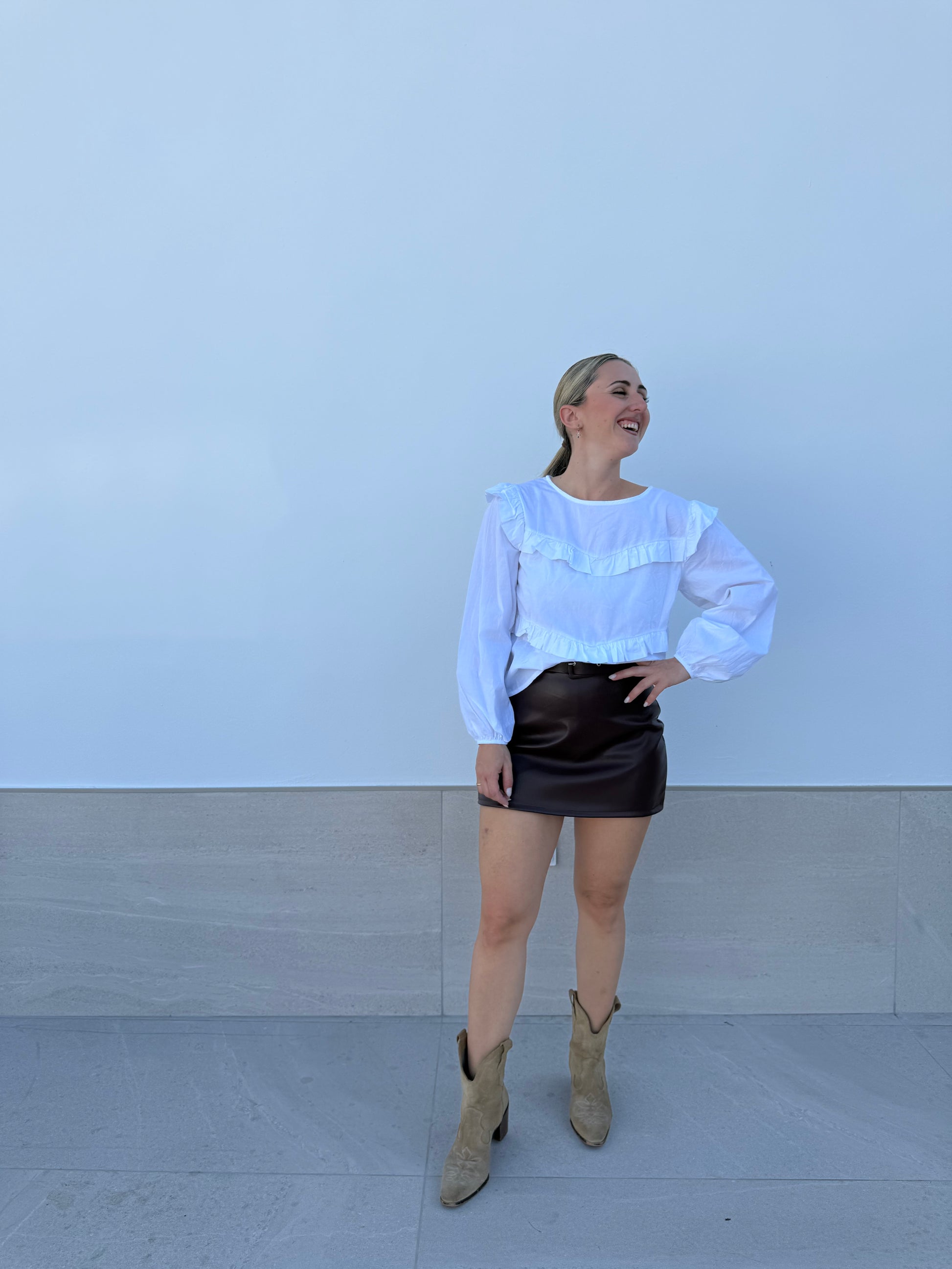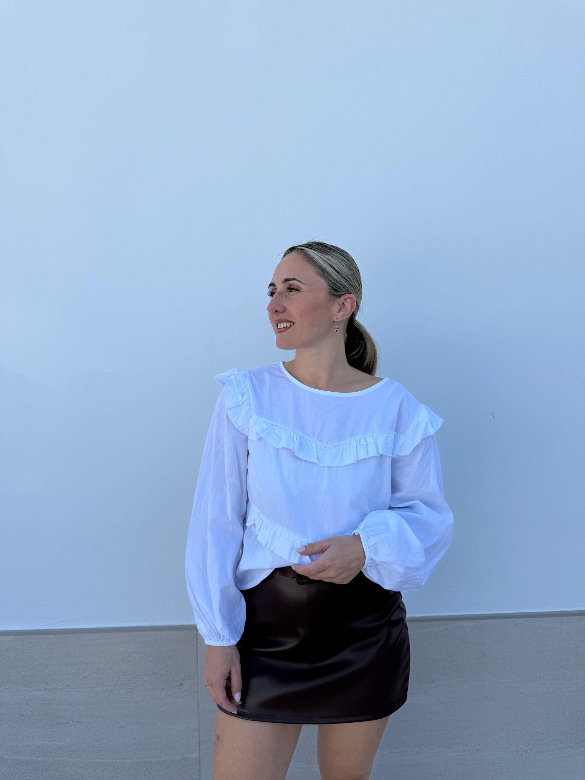 Camisa manga larga con detalle de volantes. Talla única hasta 40.