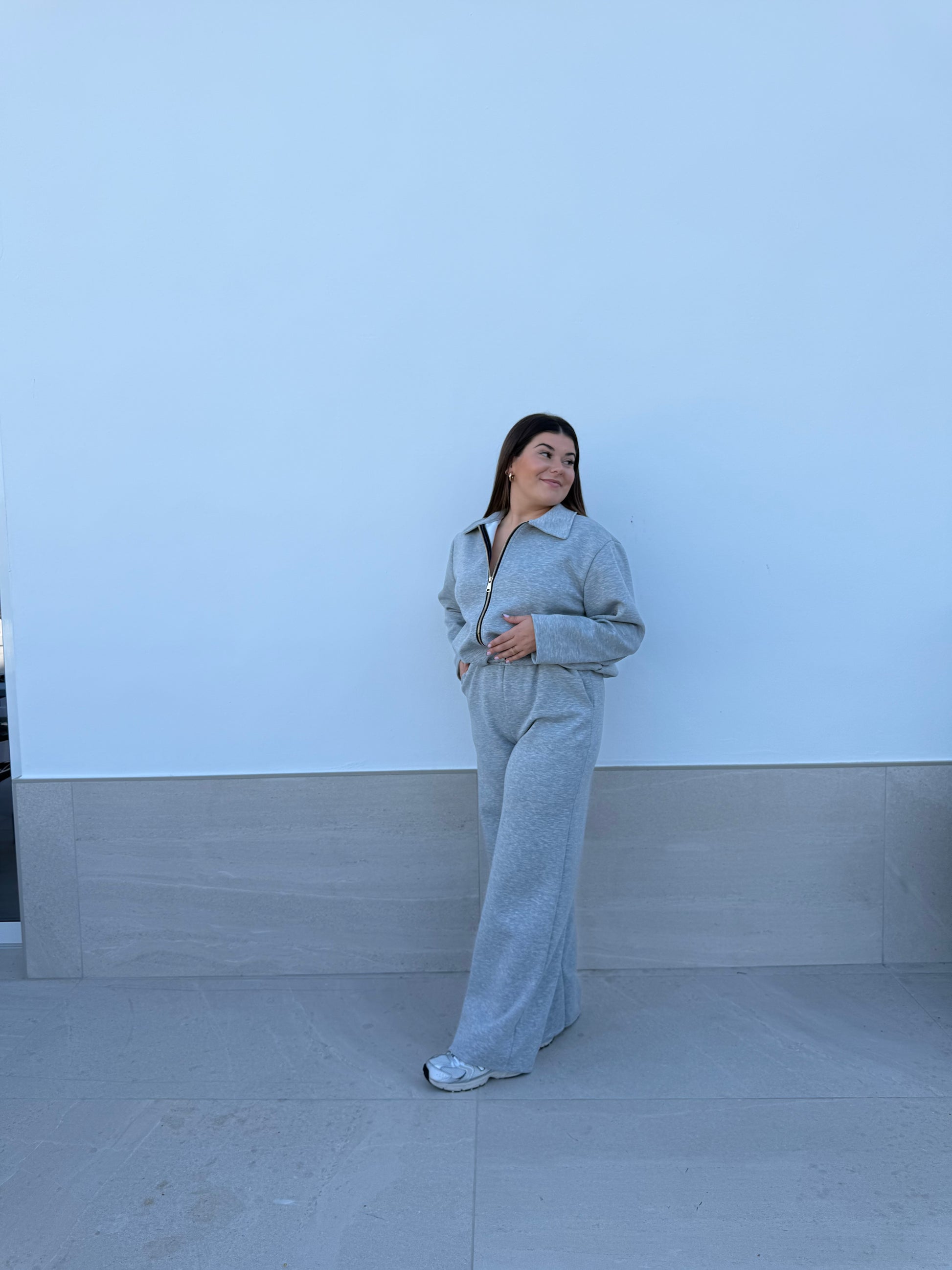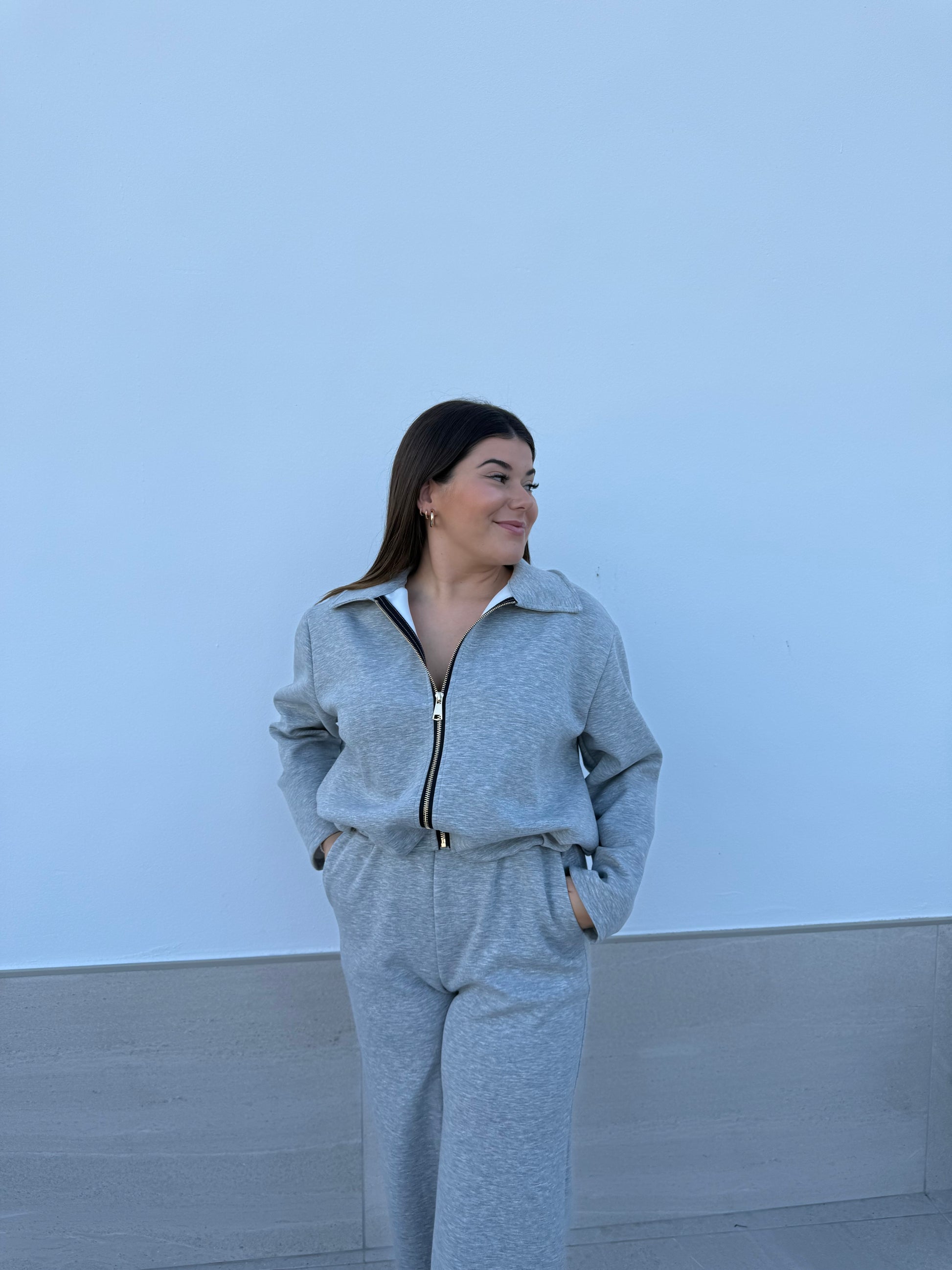 Chándal con sudadera estilo bomber con cremallera y pantalones ancho. Talla única hasta 42.