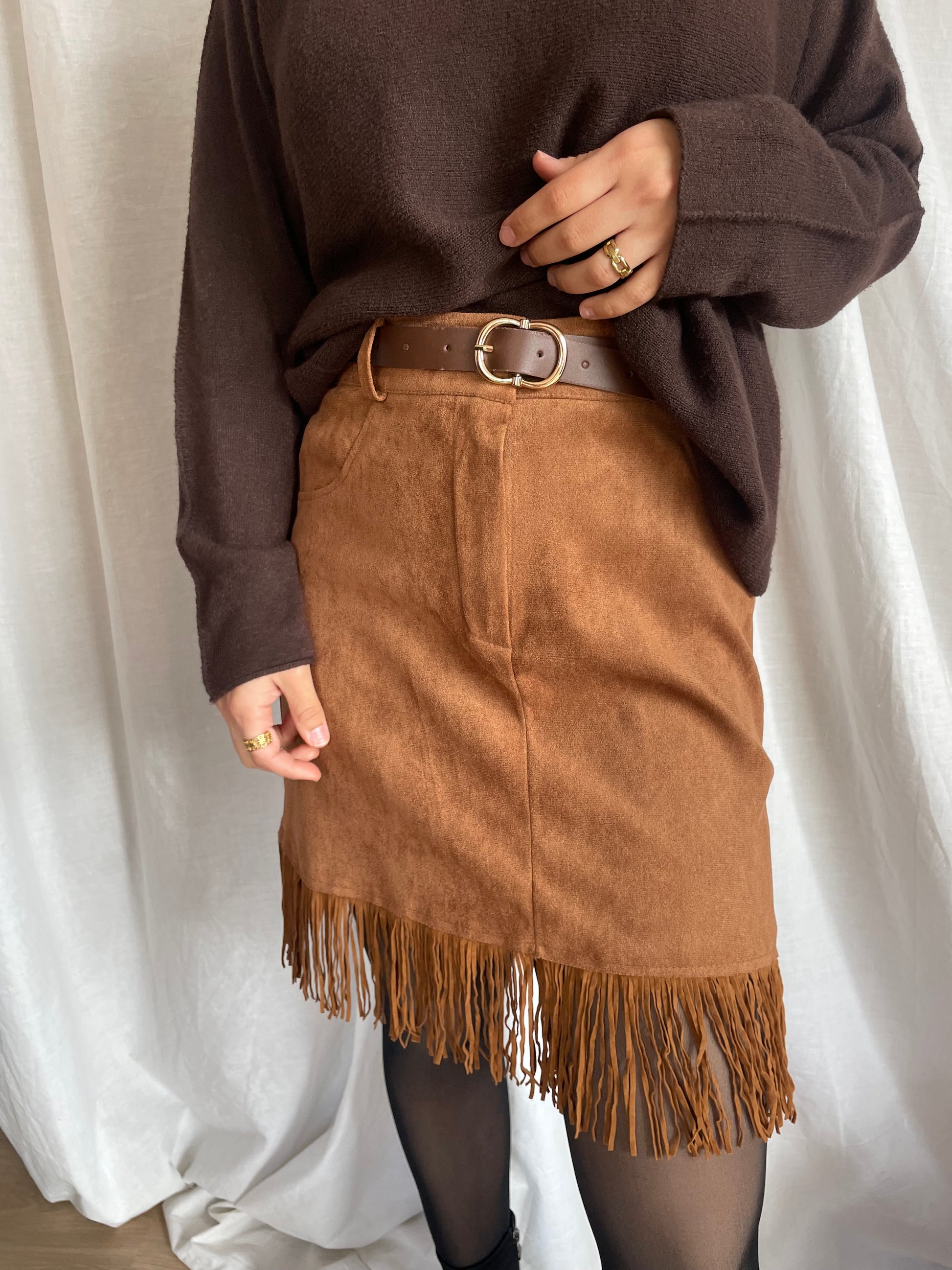 La falda de ante con flecos es una prenda imprescindible en cualquier armario. Con su suave textura y estilo, esta falda es perfecta para cualquier ocasión. Ya sea para una salida con amigos o una reunión de trabajo, su estilo clásico y elegante te hará destacar. ¡Hazla parte de tu guardarropa hoy mismo!