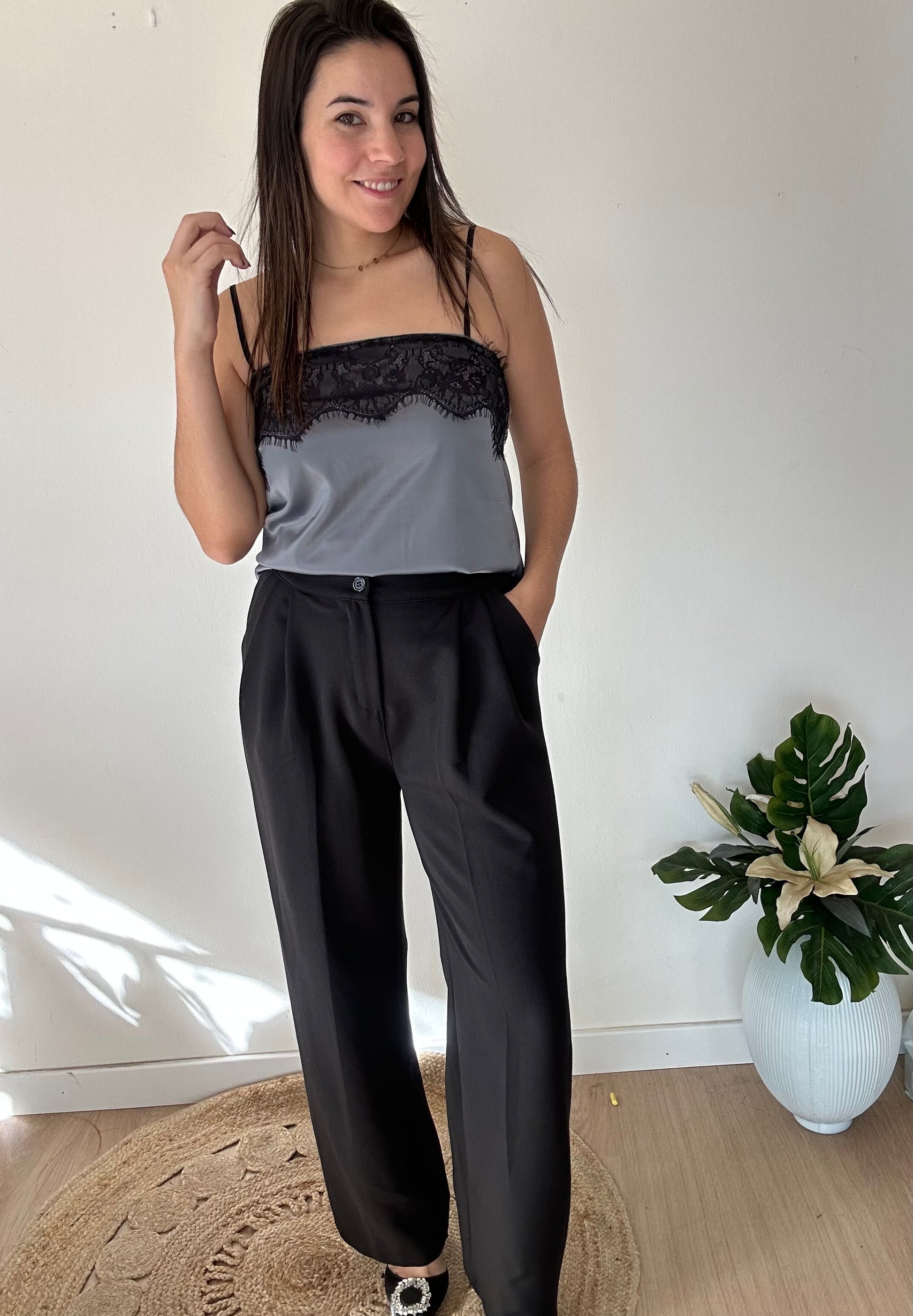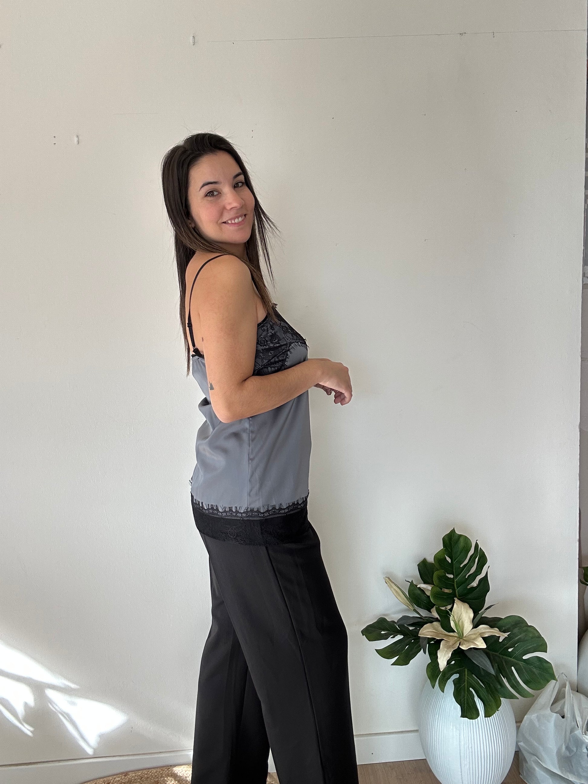 Lencero escote cuadrado de tiranta fina. Talla única hasta 40.