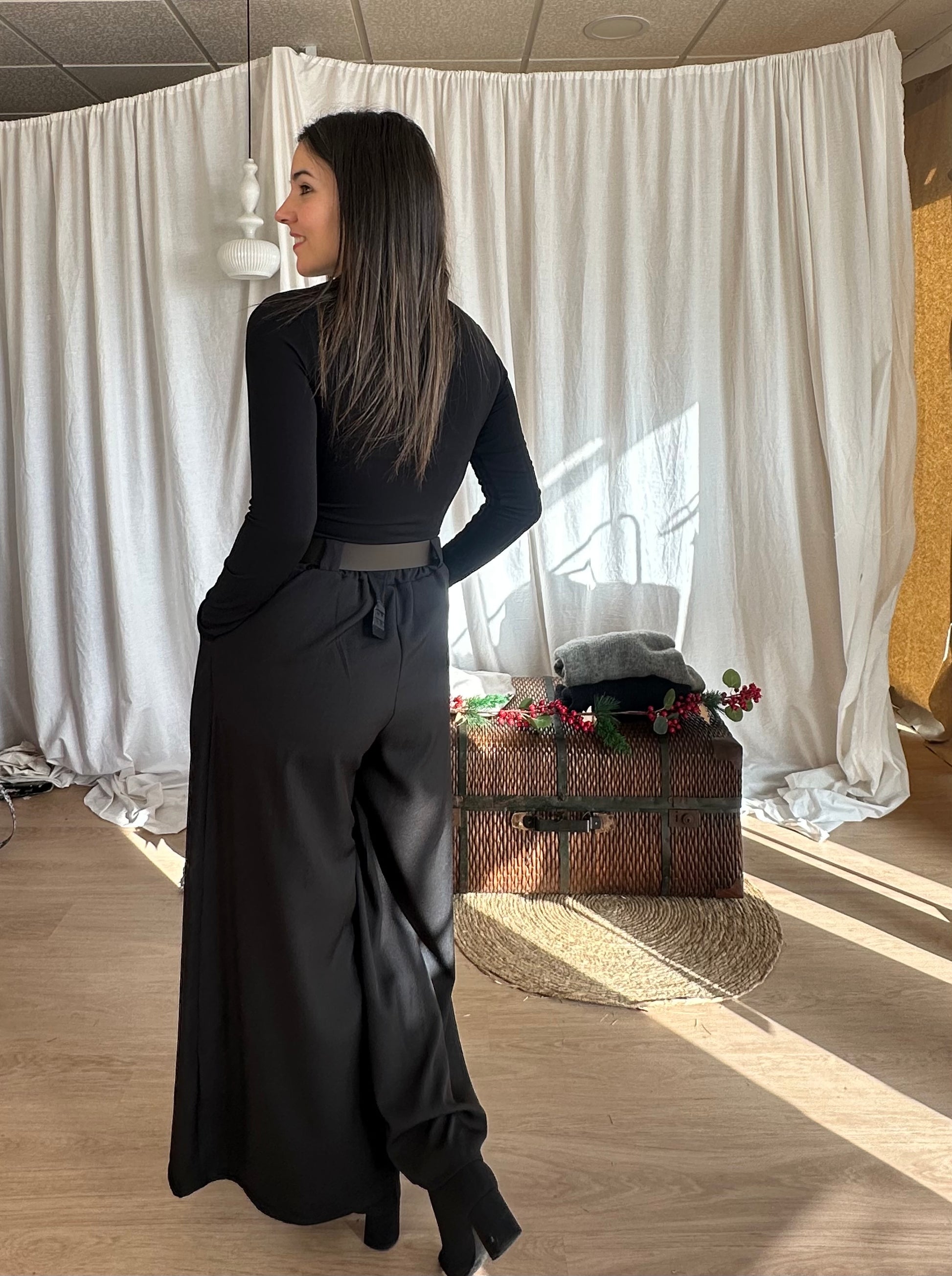 Disfruta de la comodidad y elegancia con nuestro Palazo Negro. Con un corte clásico y un diseño moderno, este palazo es perfecto para cualquier ocasión. Hecho con materiales de alta calidad que aseguran durabilidad y comodidad. Obtén un look sofisticado y sin esfuerzo con nuestro Palazo Negro.