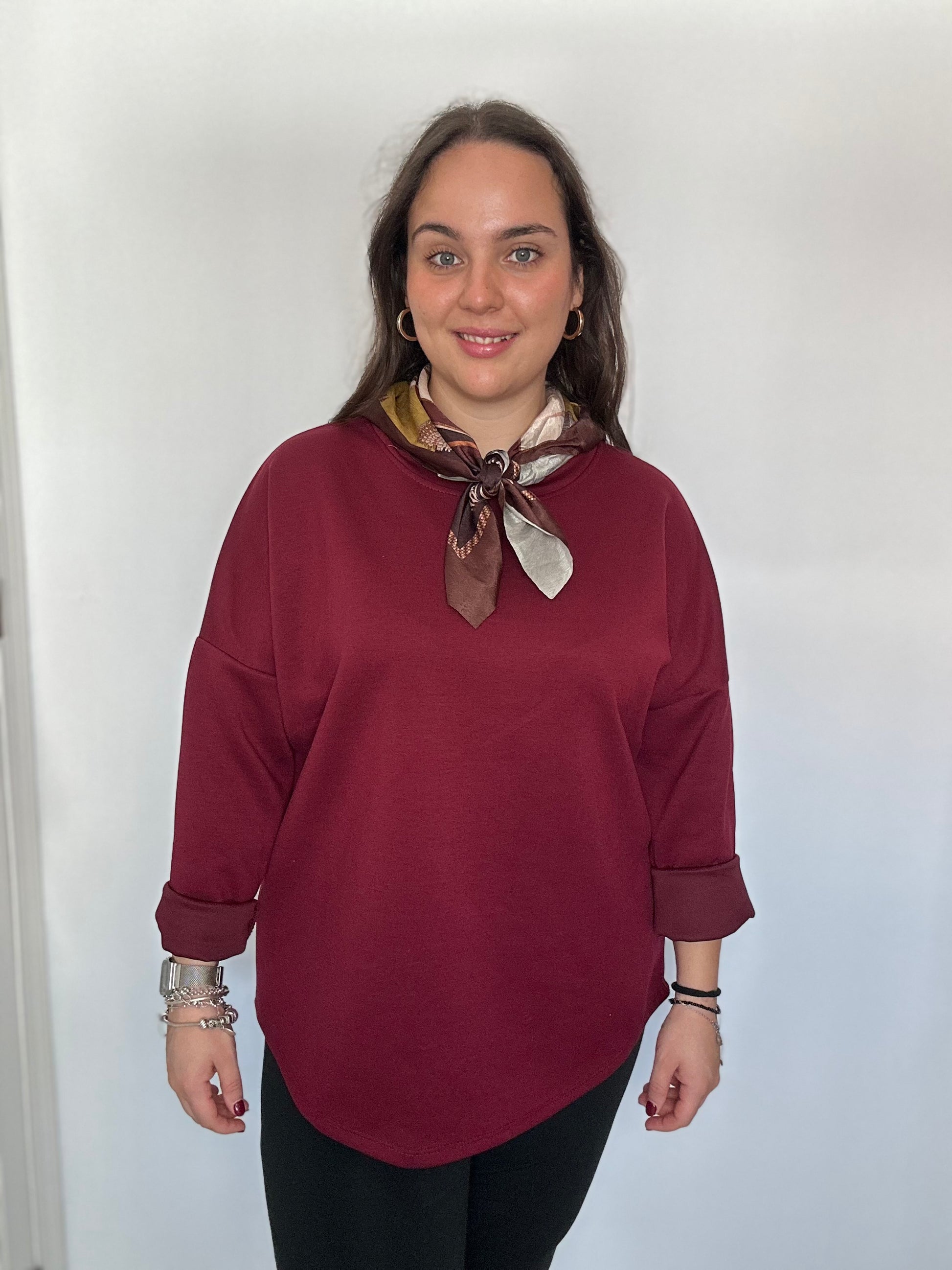 Sudadera talla curvy con pañuelo incorporado. Talla curvy.