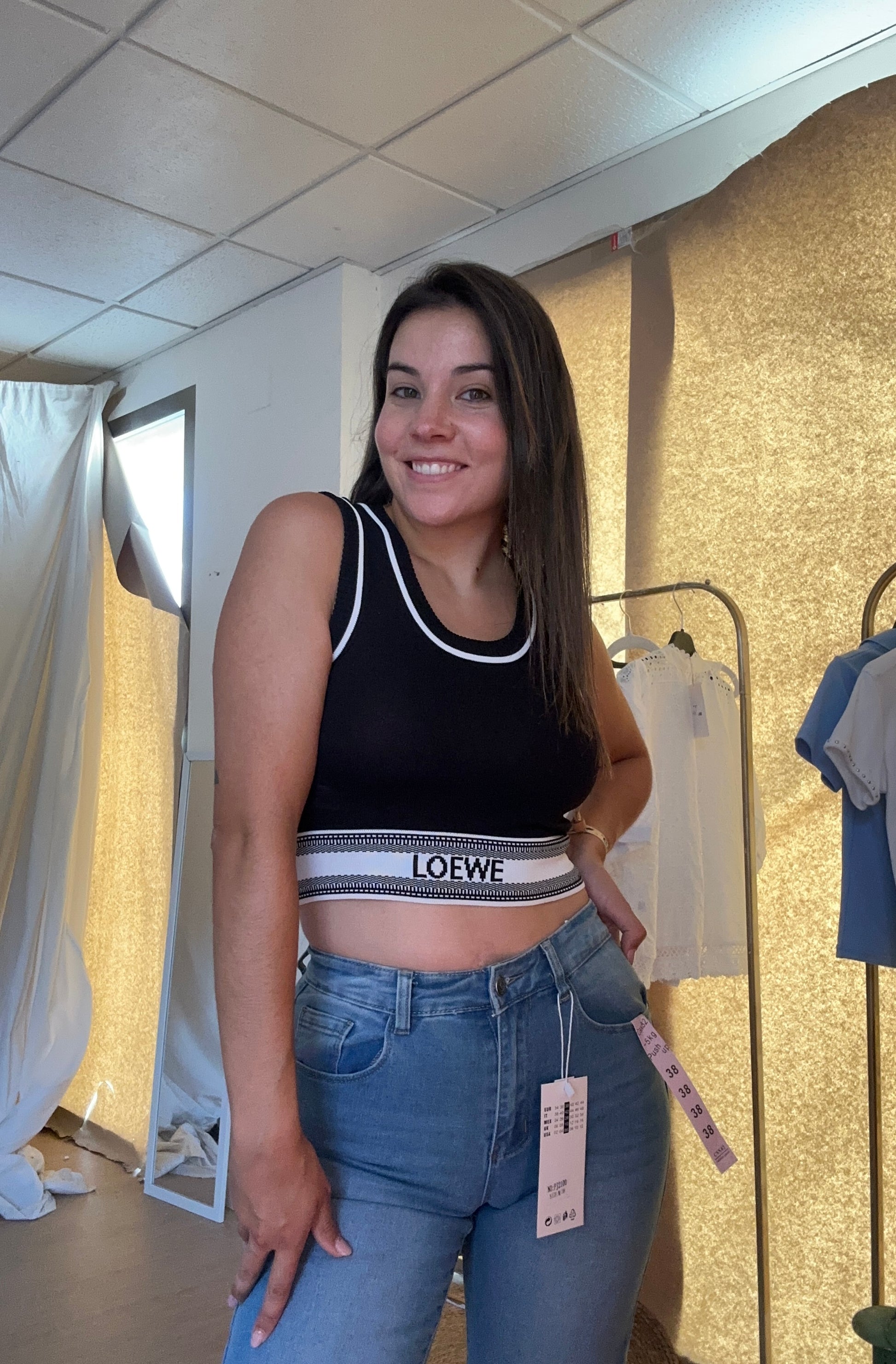 Top de tiranta inspiracción loewe. Elástico. Talla única hasta la 40.