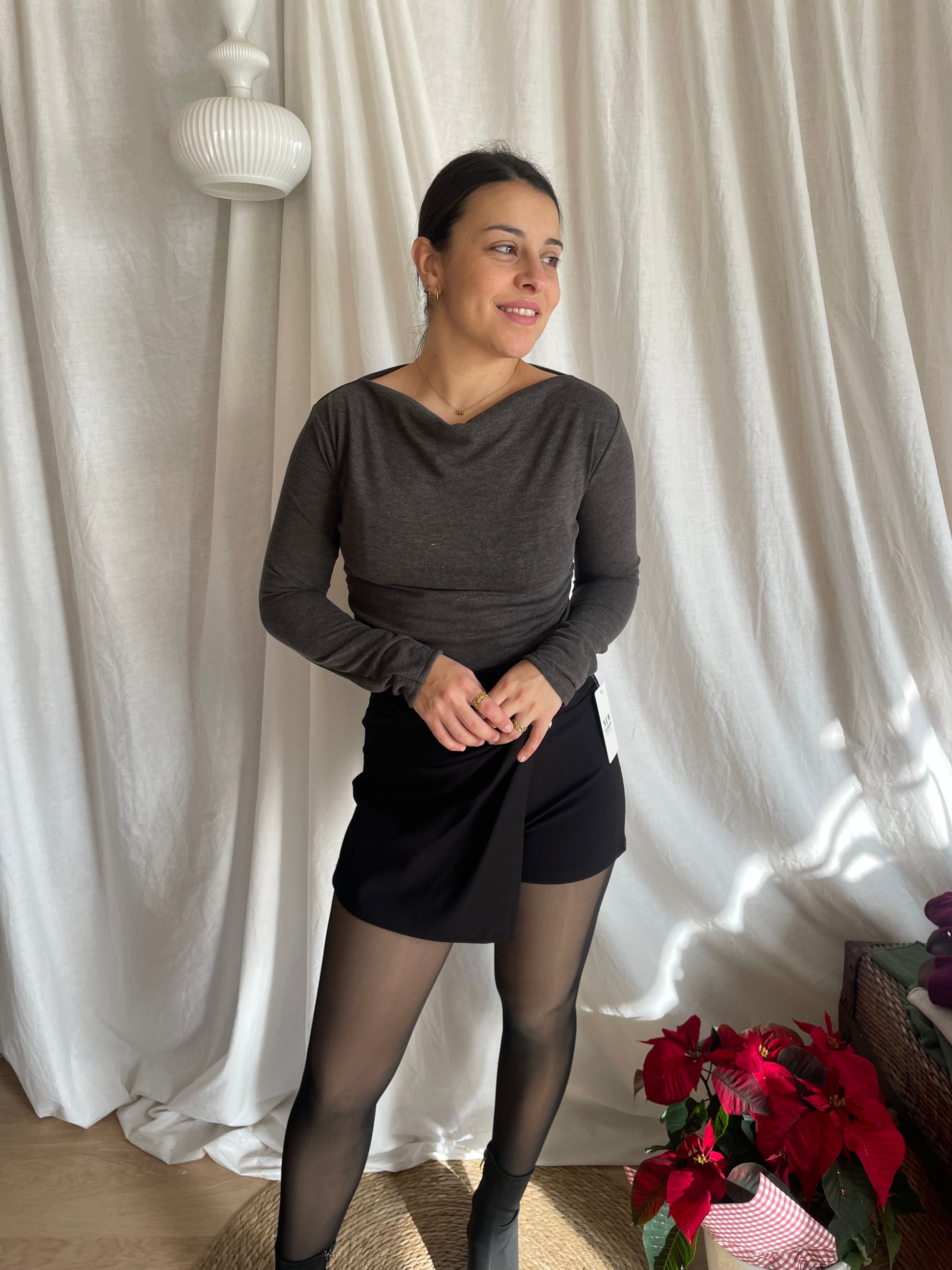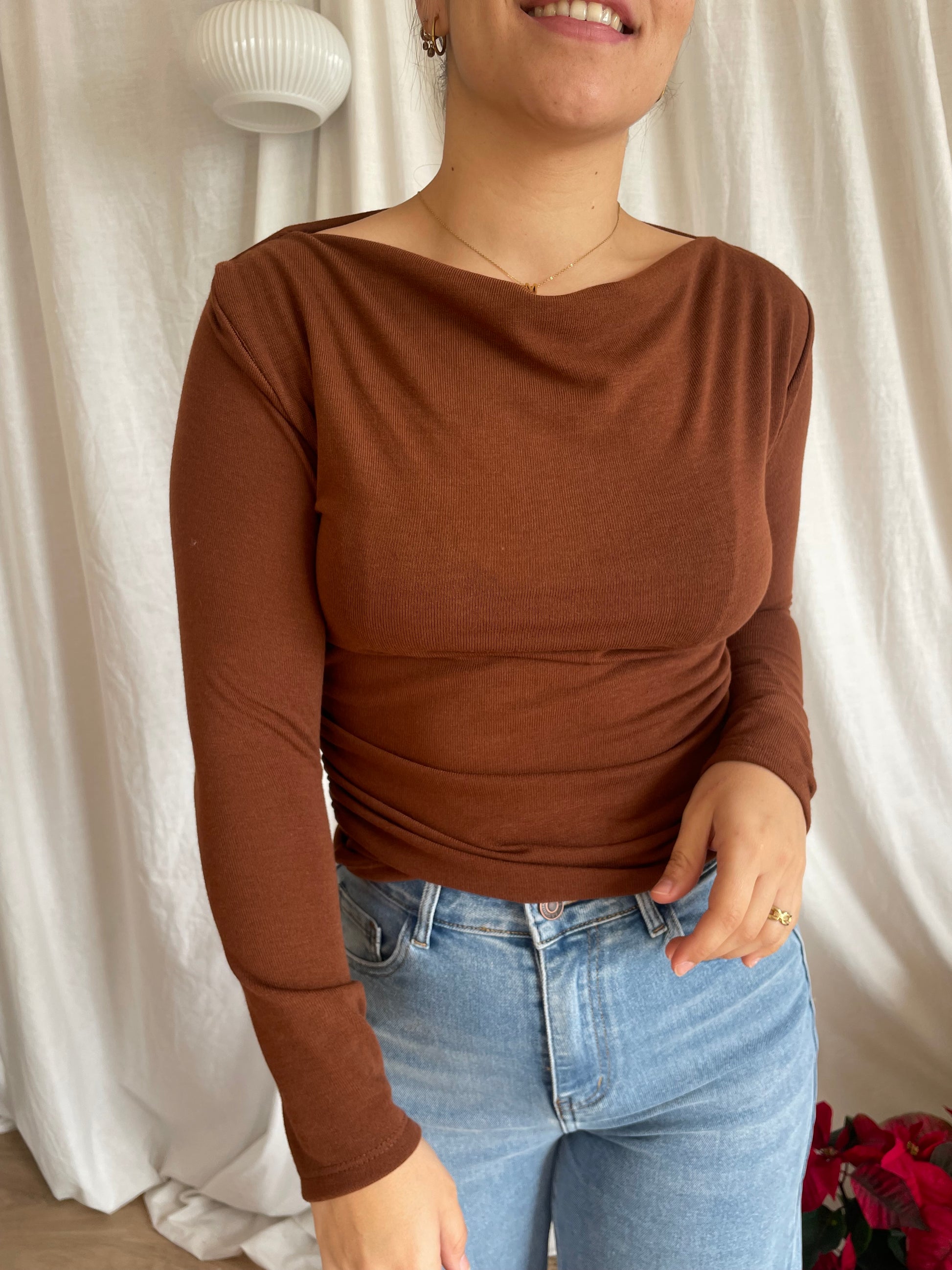 Top de punto fino con cuello barca. Talla única hasta 40.